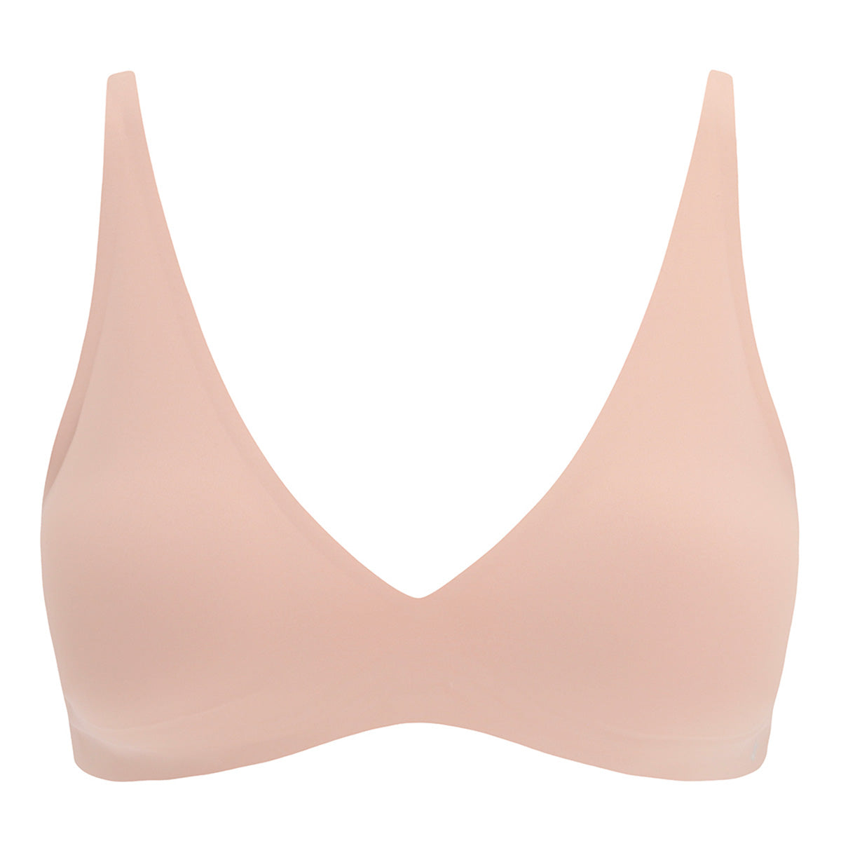 Bra escote en V sin varillas, copas removibles y tirantes ajustables.