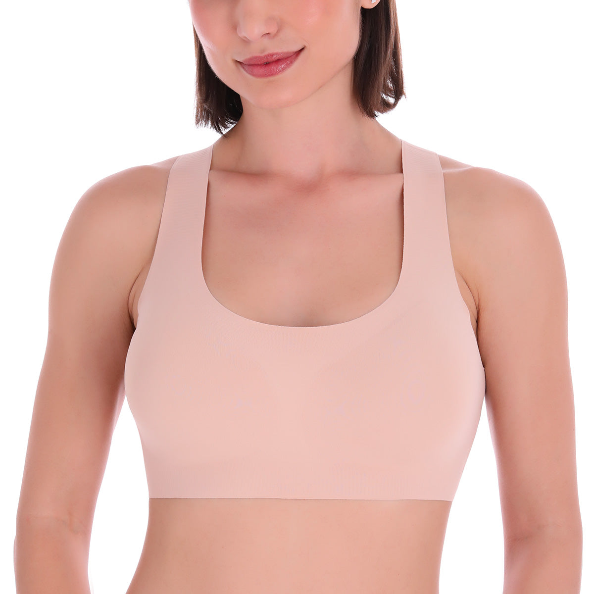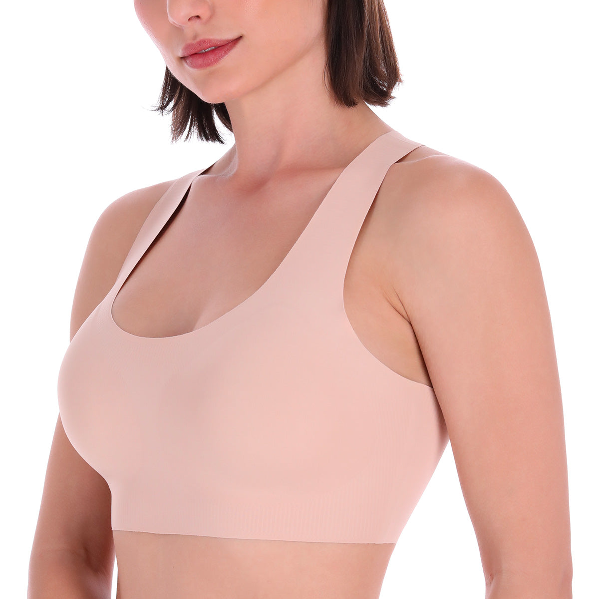 Top sin varilla y copas removibles. Ajuste cómodo y soporte ligero, sin costuras.