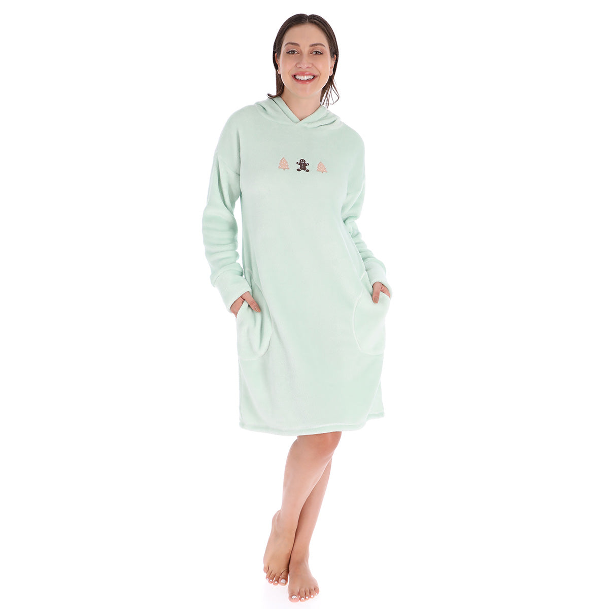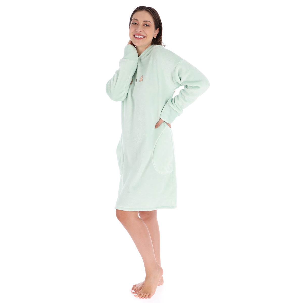 CAMISON MANGA LARGA CON GORRO Y BORDADO